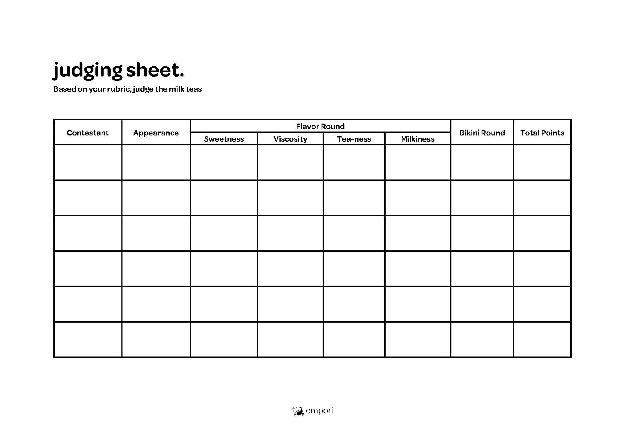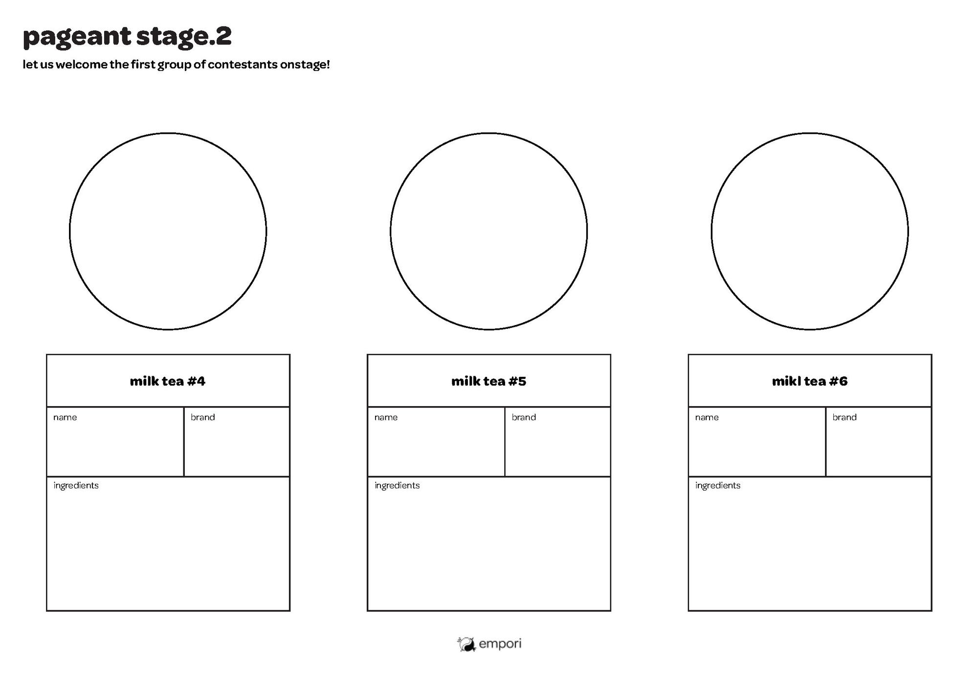 Fill up the Pageant Stage sheet and place the milk teas in the corresponding circles.