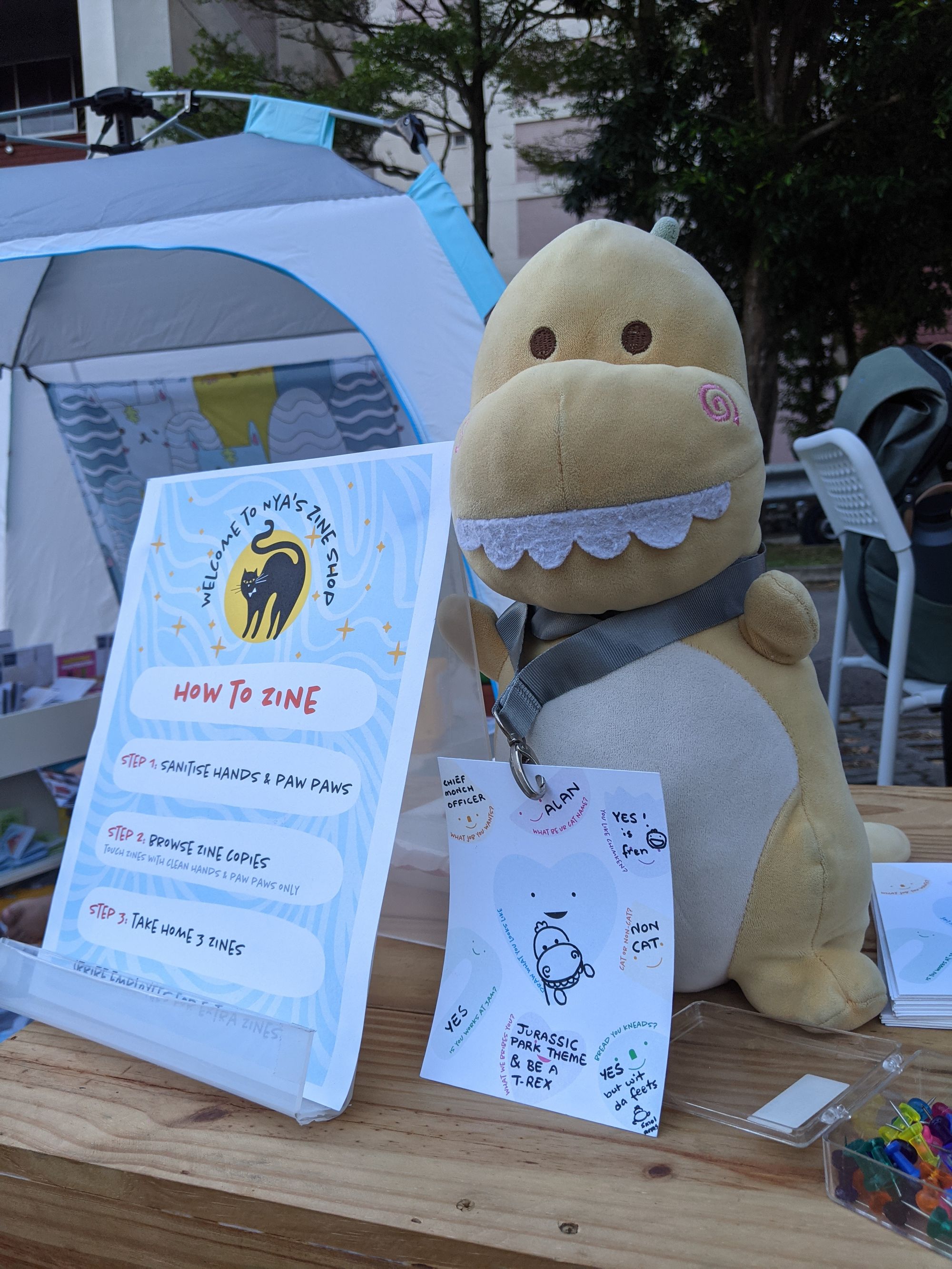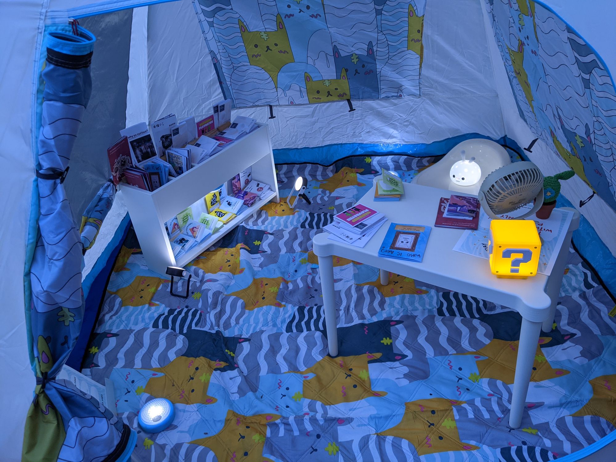 A cat, a tent, and zines