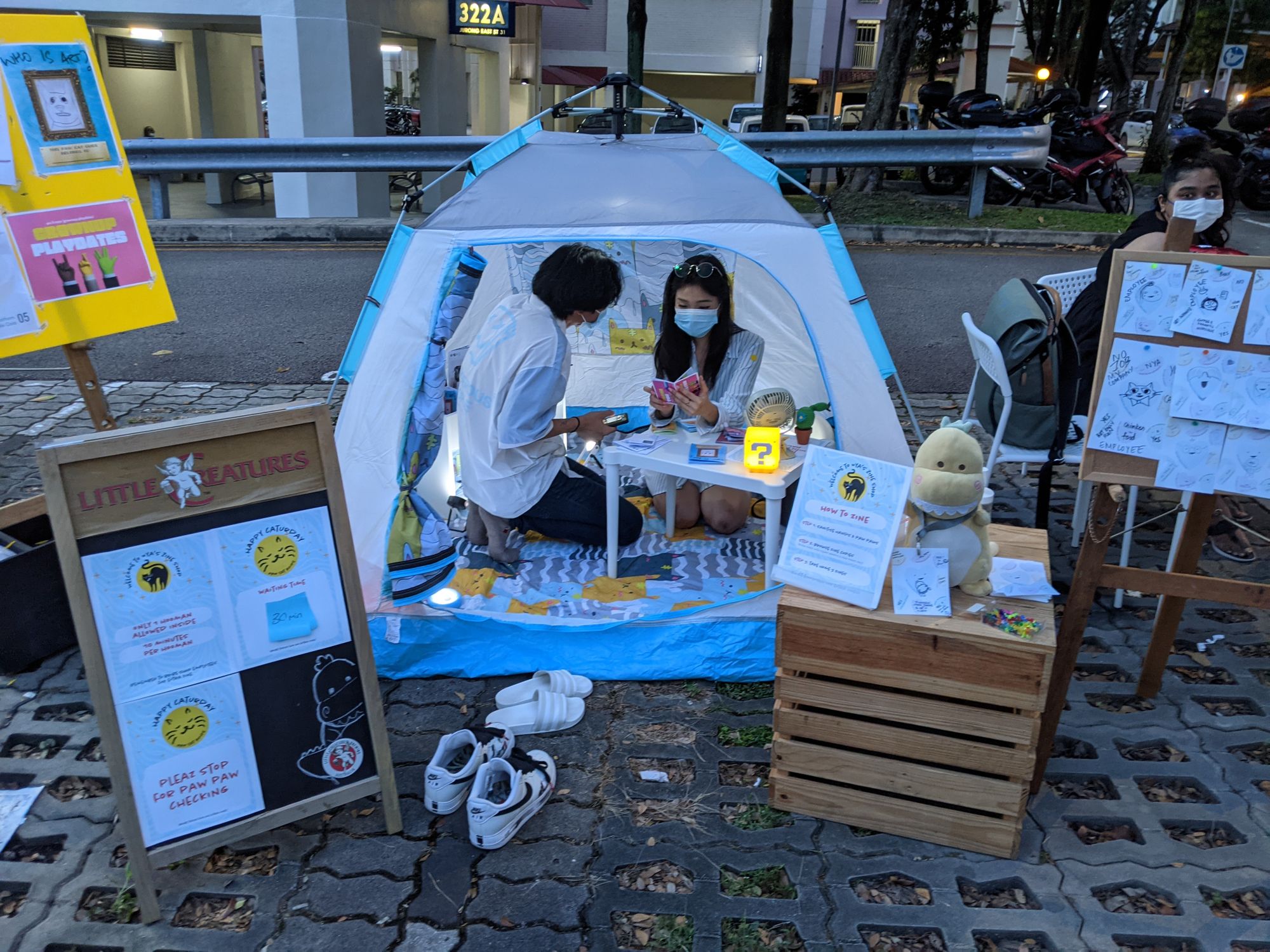 Right. So, we also had another challenge. PARK(ing) Day in Singapore is kinda a non-profit placemaking project. Therefore, we can't actually sell zines at this event, at least not literally.